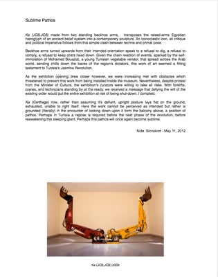 Ka transposes the raised-arms Egyptian hieroglyph of an ancient belief system into a contemporary sculpture. An iconoclastic icon, a primal gesture as much about beckoning the heavens as it is a gesture of despair. All critique and political imperative follows from this simple clash between techne and sacred pose.